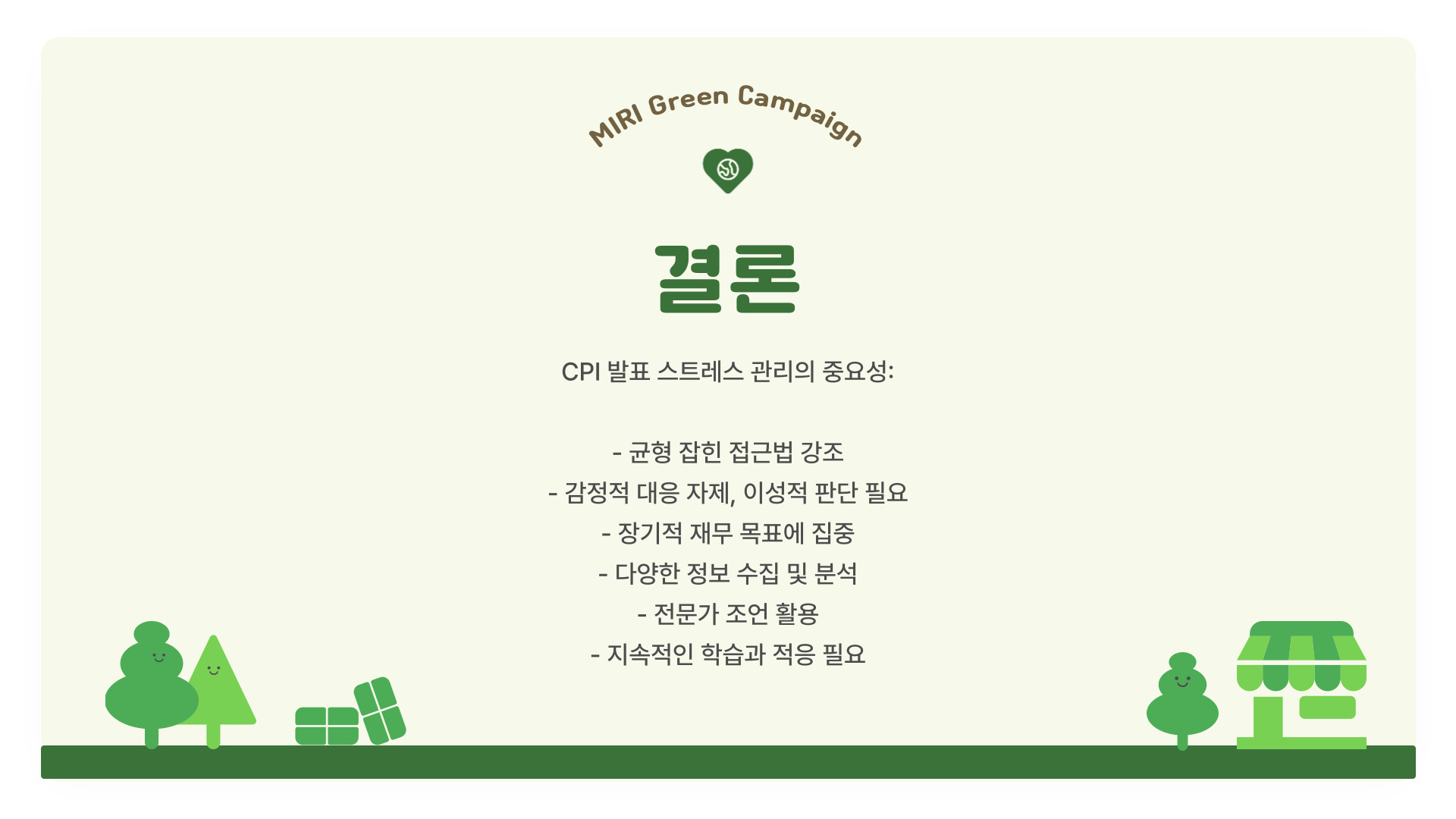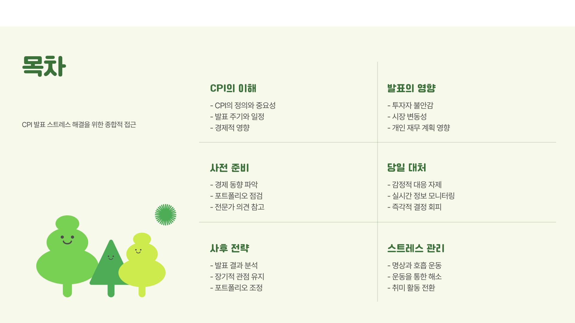 CPI 발표로 인한 스트레스는 여러 원인으로 발생할 수 있습니다. 첫째, 시장의 변동성이 커질 가능성이 있습니다. 발표 후 주식 시장이나 외환 시장이 급격히 변화할 수 있기 때문에 투자자들은 불안감을 느끼게 됩니다. 둘째, CPI 수치가 예상과 다를 경우 경제적 불안이 커질 수 있습니다. 이러한 예측 불가능성은 많은 사람들에게 스트레스를 유발합니다. 마지막으로, CPI 발표를 통해 경제 전반에 미치는 영향을 과도하게 걱정하는 경향이 있습니다.