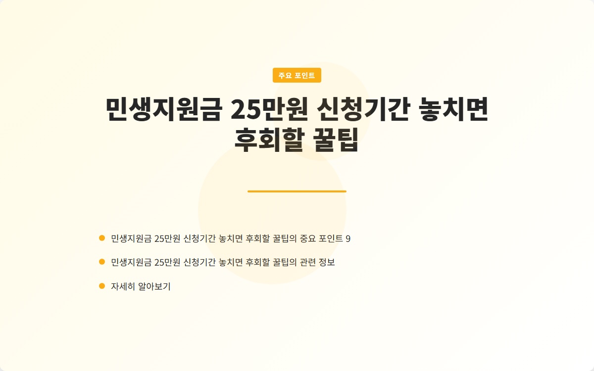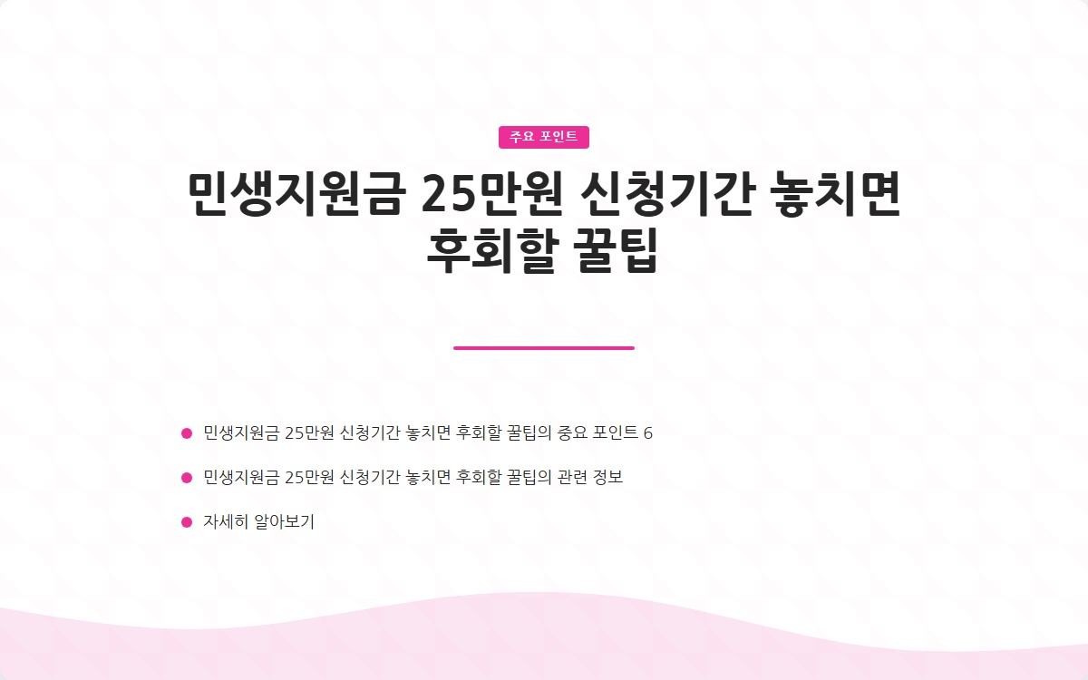 2025년 민생지원금 25만원 신청기간을 놓치지 않기 위해서는 사전에 충분한 정보를 파악하고, 계획적으로 준비하는 것이 필수입니다. 이 글을 통해 유익한 정보를 얻으셨기를 바랍니다!