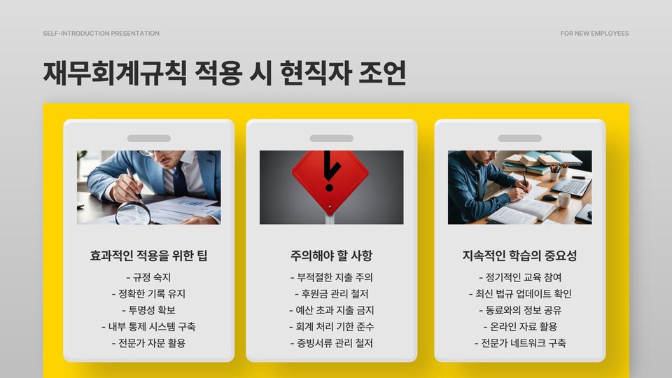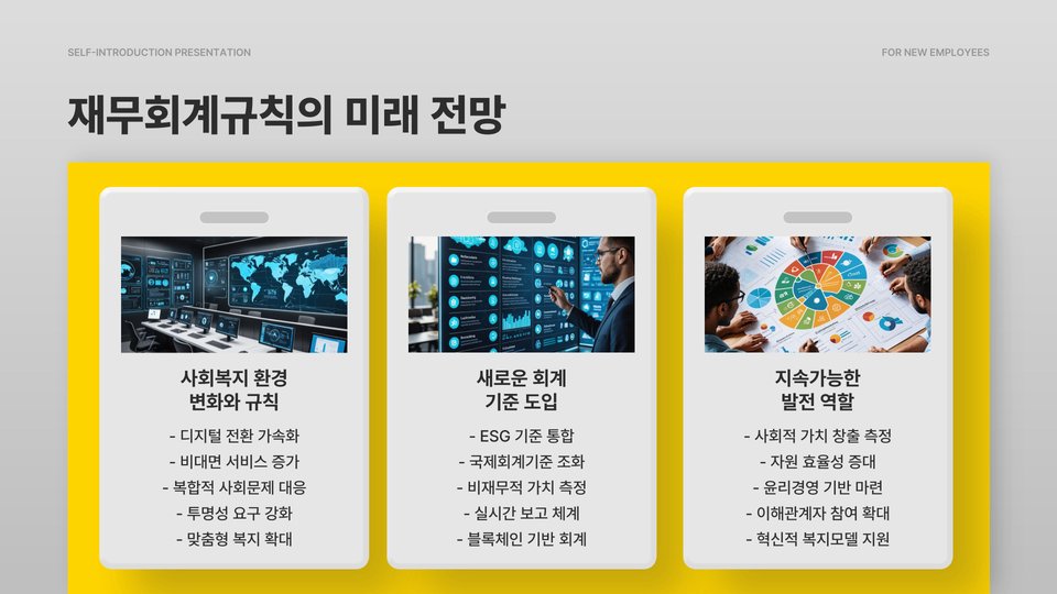 결국, 사회복지시설의 경영진은 해당 규칙을 철저히 이해하고, 내부 환경에 맞추어 잘 적용해야 합니다. 이런 과정에서 현직자의 의견과 경험이 큰 도움이 됩니다. 따라서 지속적인 교육과 훈련을 통해 재무 회계에 대한 이해도를 높이는 것이 중요합니다. 여러분의 사회복지시설이 더 나은 방향으로 나아가기 위해 필요한 재무 수단에 대한 고민이 필요합니다.