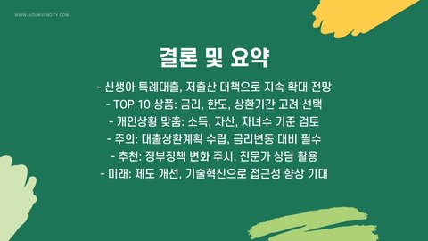 중요 팁: 대출 상품을 선택할 때는 반드시 조건을 면밀히 검토하고, 필요할 경우 전문가의 상담을 받는 것이 좋습니다.