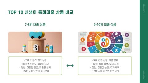 다양한 신생아 특례대출 상품 중에서 어떤 상품을 선택할지 고민하는 부모님들을 위해 TOP 10 추천 상품을 분석해 보겠습니다. 각 상품은 금리, 대출 한도, 상환 기간 등 다양한 요소를 고려하여 선정되었습니다. 이 목록은 부모님들이 보다 나은 결정을 내리는 데 도움이 될 것입니다.