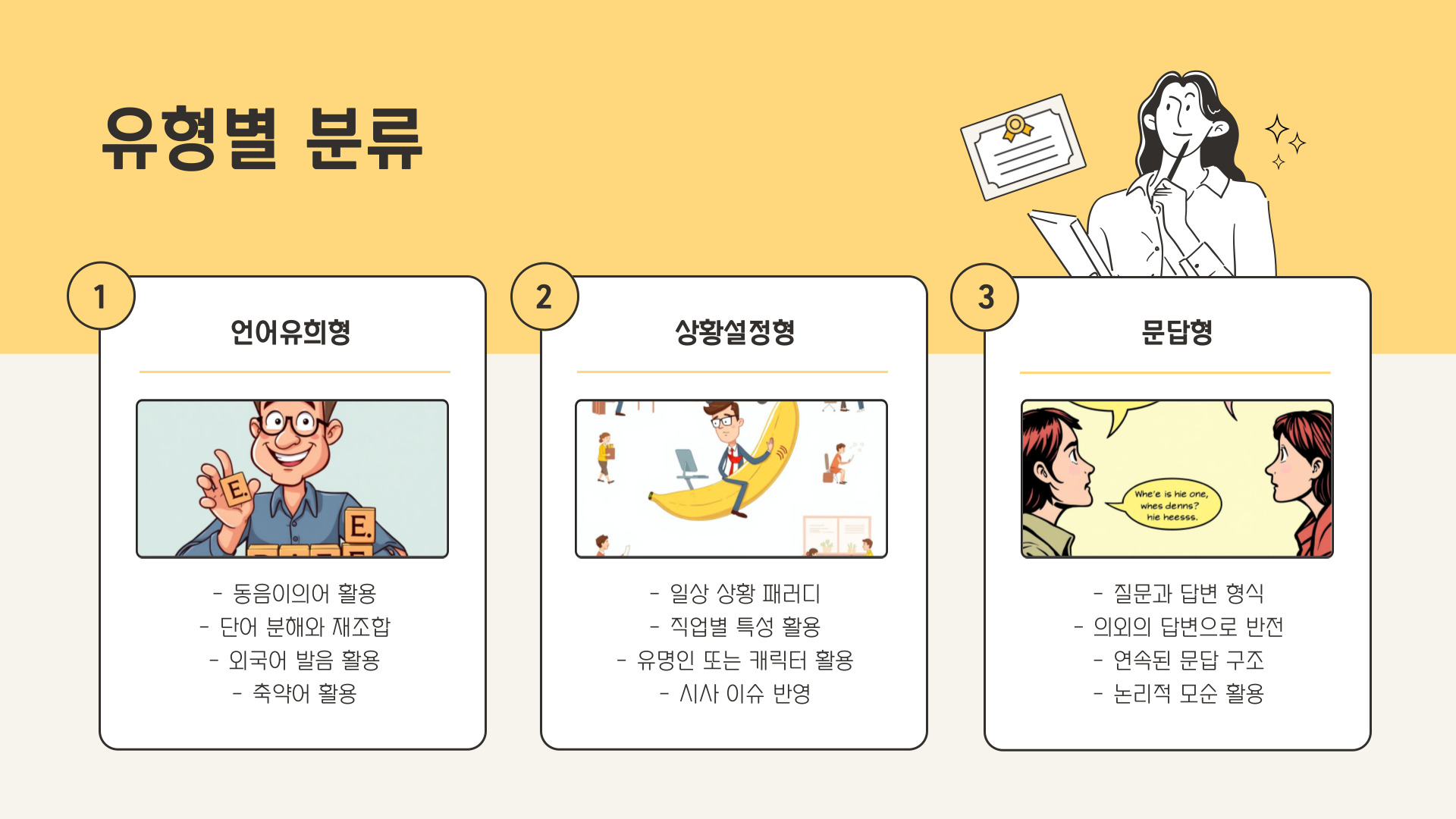 - 아재개그는 단순하고 허술한 유머로, 모두가 즐길 수 있는 특성이 있음