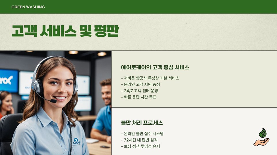 서비스 품질은 고객의 경험에 직접적인 영향을 미치는 요소입니다. 에어로케이는 고객 서비스를 위해 다양한 프로그램과 정책을 도입하고 있습니다. 고객의 요구를 신속하게 반영하고, 불만 사항에 대한 적절한 대응이 이루어지는 것이 중요합니다.