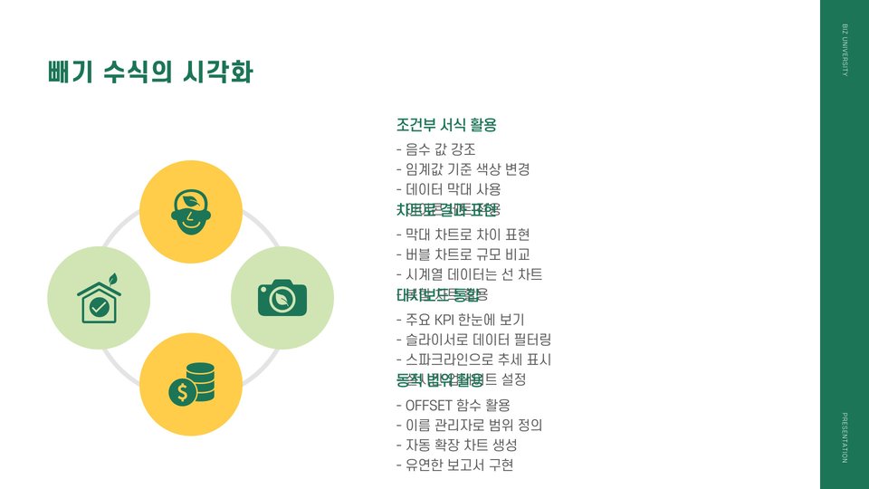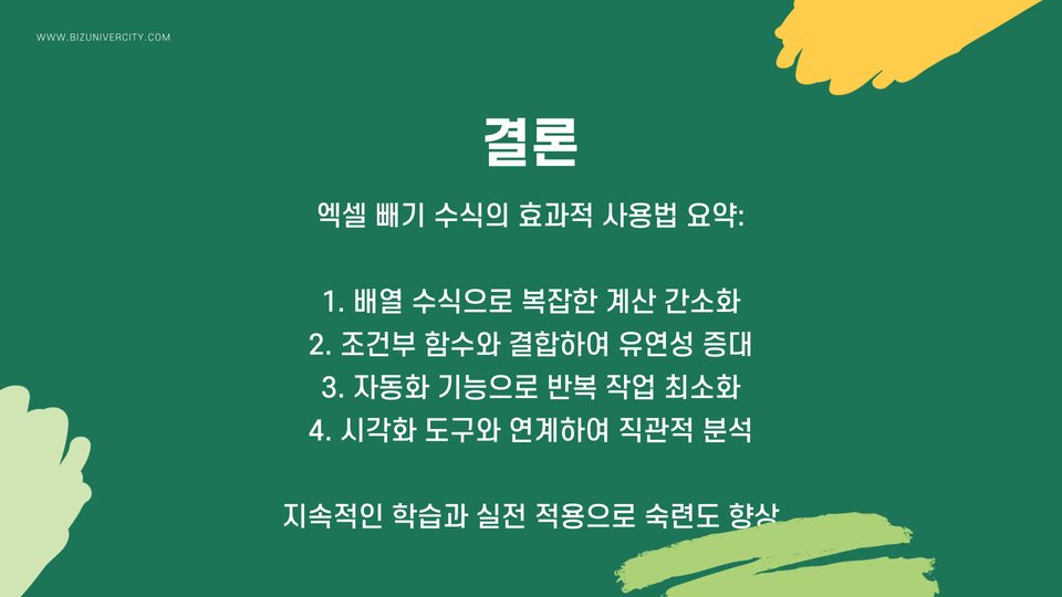 - 조건부 서식을 사용해 결과를 시각적으로 강조하세요.