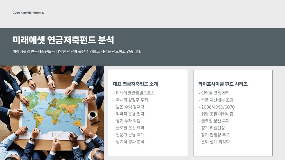 미래에셋의 연금저축펀드는 다양한 투자 옵션을 제공합니다. 주식형, 채권형, 혼합형 등 여러 종류의 펀드 선택이 가능하여 투자자의 성향에 맞는 상품을 쉽게 찾을 수 있습니다. 또한, 세액공제 혜택이 있어 연금저축펀드에 투자할 경우 세금 부담을 줄일 수 있습니다. 이 외에도 투자 성과가 우수하여 장기 투자에 적합한 상품으로 평가받고 있습니다.