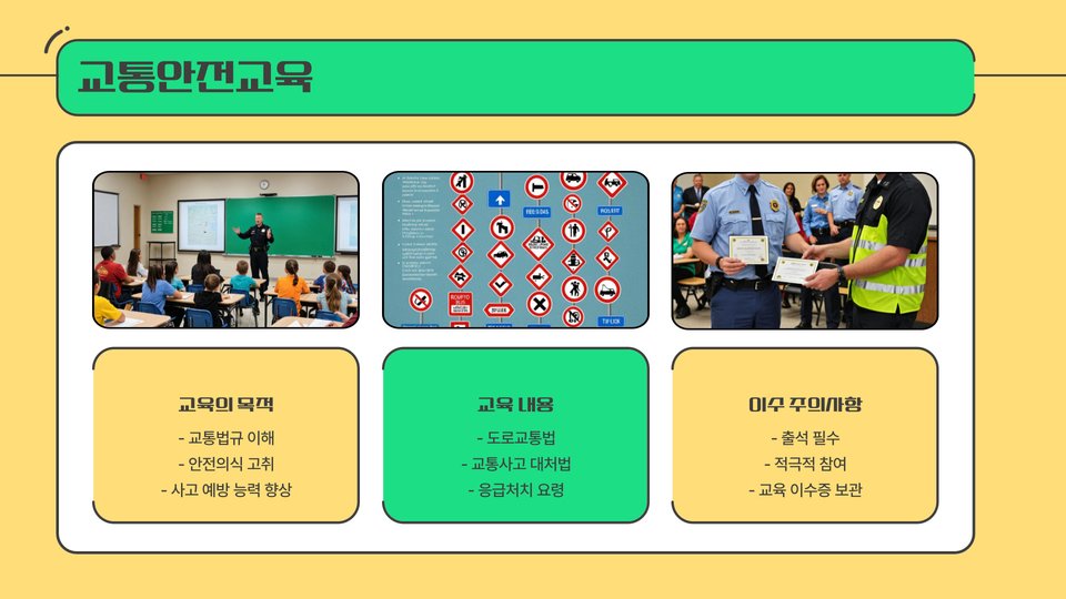 - 운전면허 취득 후에는 안전 운전이 가장 중요하다.