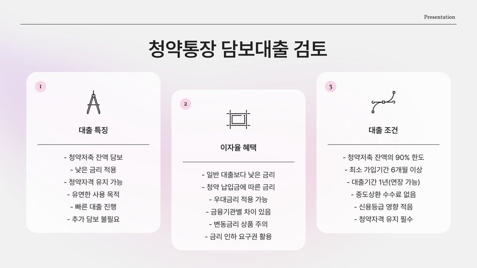 - 주택청약 저축 대출의 낮은 이자율이 경제적 부담을 줄입니다.