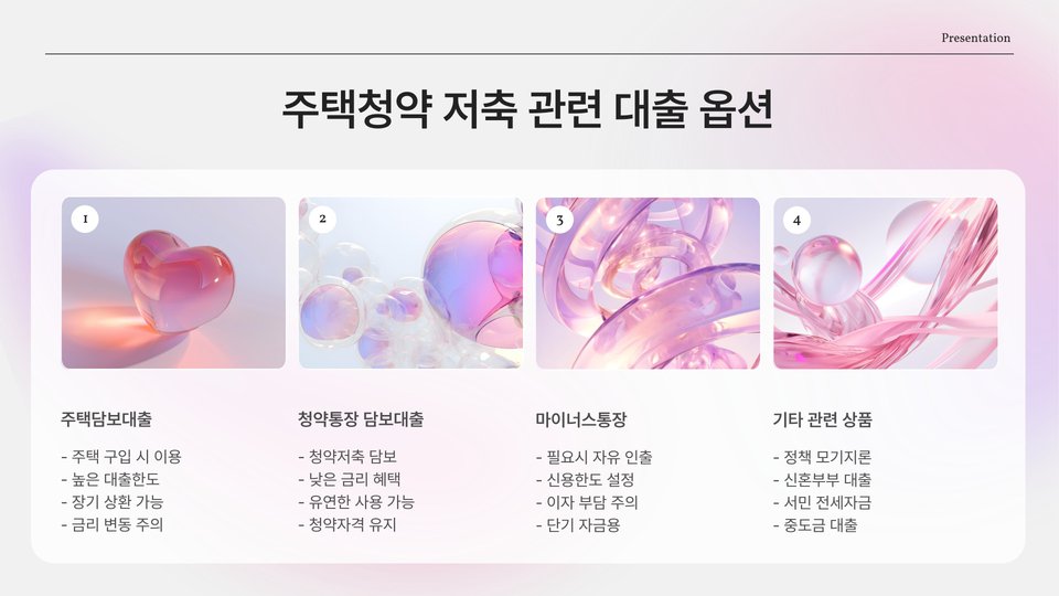 - 대출 상품은 각 금융기관마다 조건이 다르므로 비교가 필요합니다.