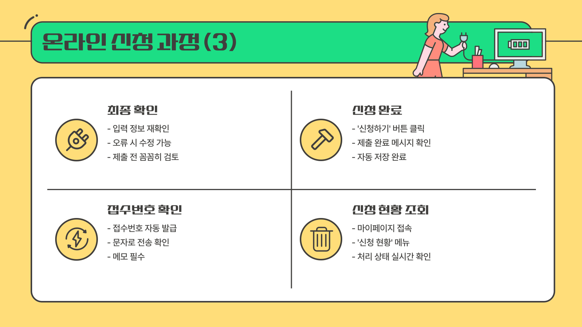 • 온라인 신청이 가장 편리하며, 필요 서류 준비 필수