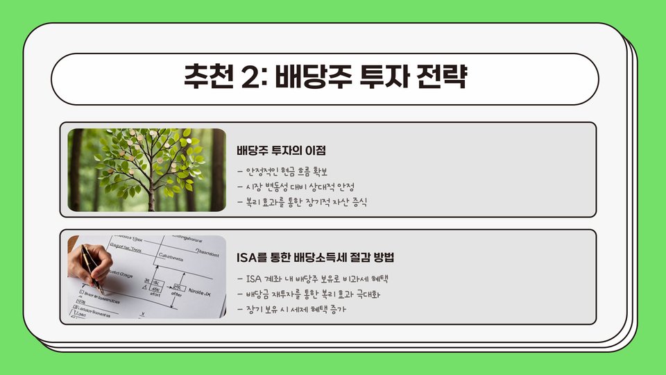 이제 본격적으로 2025년을 대비한 ISA 중계형 소액 상품 5가지를 추천하고자 합니다. 각 상품은 투자자의 목적과 성향에 따라 선택할 수 있는 다양한 옵션을 제공하고 있습니다. 첫 번째로 추천하는 상품은 'A 상품'입니다. 이 상품은 주식과 채권에 균형 잡힌 비율로 분배되어 있어, 안정성과 수익을 동시에 추구하는 투자자에게 적합합니다. 투자 기간은 3년 이상 추천하며, 기본적으로 대형 기업 주식에 집중 투자합니다.
