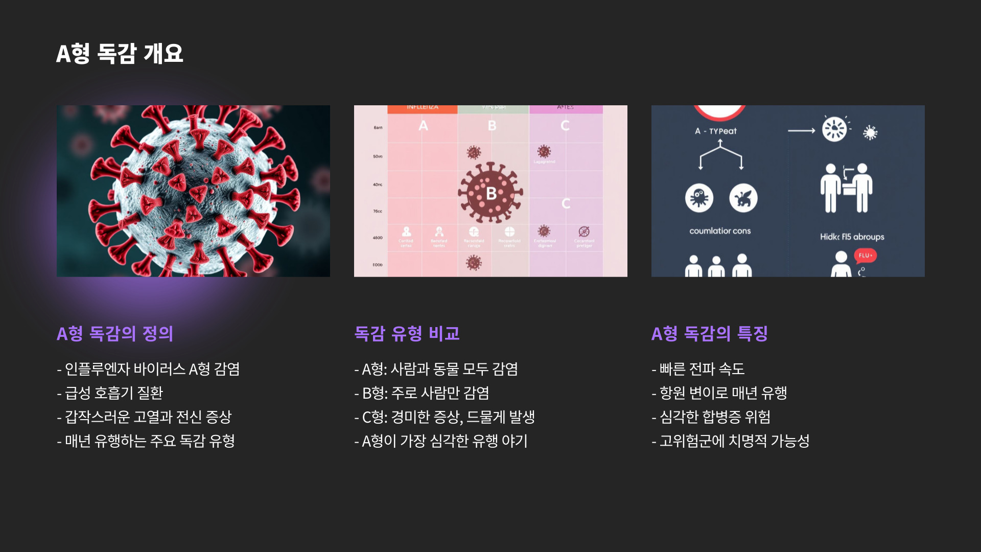 - A형 독감는 매우 전염성이 높은 호흡기 질환이다.
