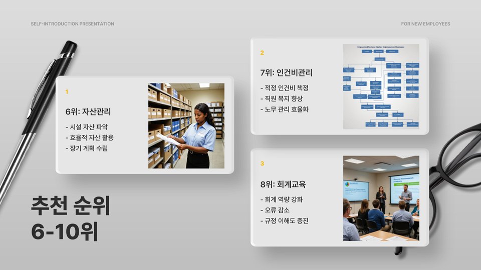 현직자들이 추천하는 사회복지시설 재무회계규칙은 다음과 같습니다. 첫 번째로 기본 재무회계규칙이 있습니다. 이 규칙은 모든 사회복지시설에 적용될 수 있는 기본적인 틀을 제공하여, 초보 관리자에게 유용합니다. 두 번째는 특화된 재무회계규칙입니다. 특정 시설에 맞춤형으로 설정되어 있어, 보다 세밀한 회계 처리가 가능합니다. 마지막으로 통합 재무회계규칙이 추천됩니다. 이 규칙은 다양한 유형의 시설을 포함하여 포괄적인 회계 처리를 가능하게 합니다.