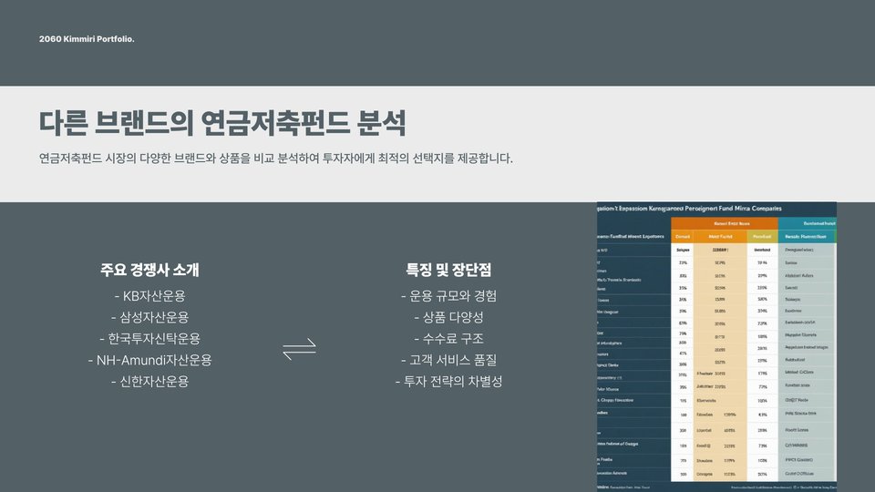 연금저축펀드는 개인의 노후 자금을 마련하는 중요한 수단 중 하나입니다. 하지만 다양한 금융기관에서 제공하는 상품들이 있어 선택에 어려움을 겪는 분들이 많습니다. 특히 미래에셋증권의 연금저축펀드는 많은 투자자들 사이에서 인기가 높습니다. 이번 글에서는 미래에셋과 다른 브랜드의 연금저축펀드를 비교하여 각 브랜드의 장단점을 살펴보겠습니다.