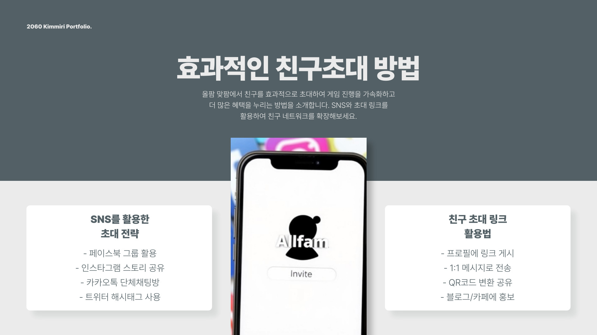 | 올팜 맞팜 커뮤니티의 활용 | 게임 관련 커뮤니티 및 SNS 그룹에서 초대 링크 공유, 소통 증진 |